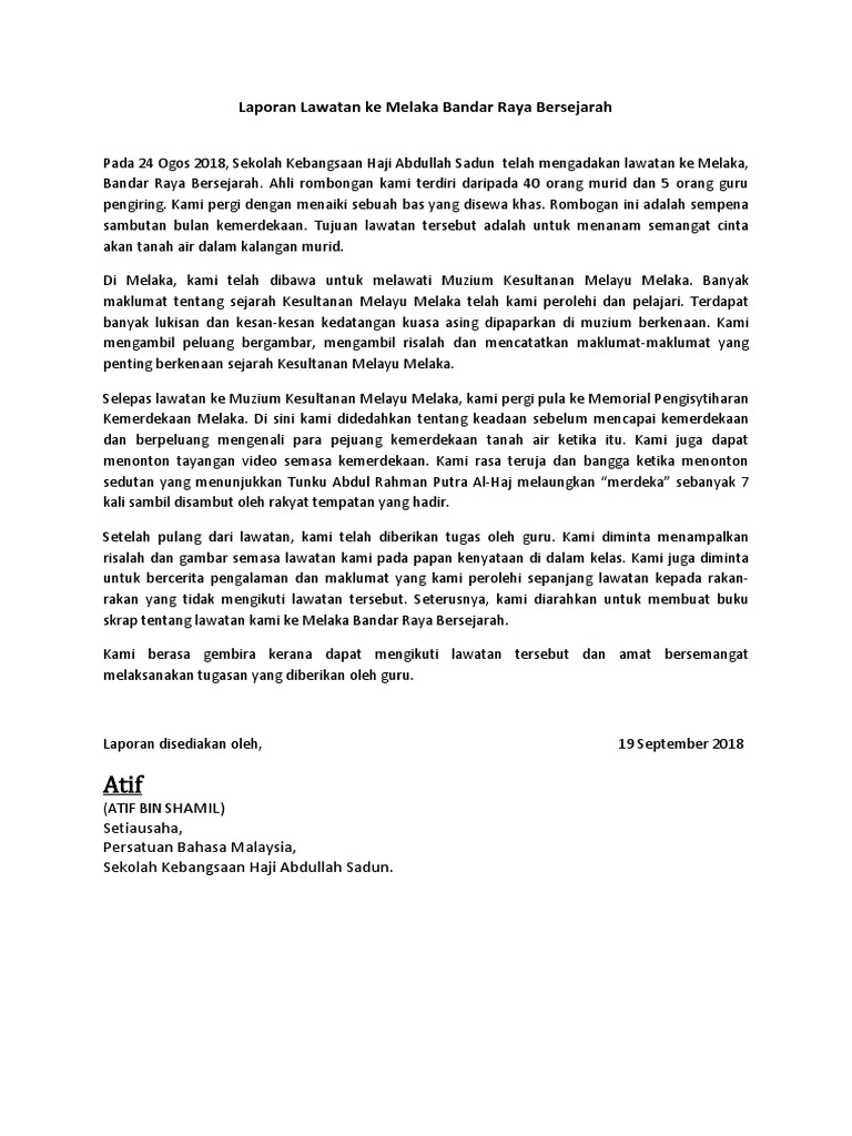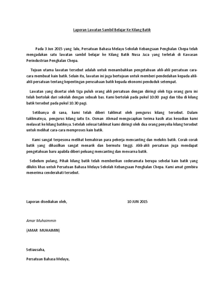 Karangan Laporan Lawatan Sambil Belajar Dan Berita Pdf