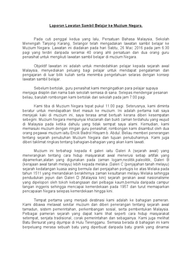Laporan Lawatan Sambil Belajar Ke Muzium Negara Pdf